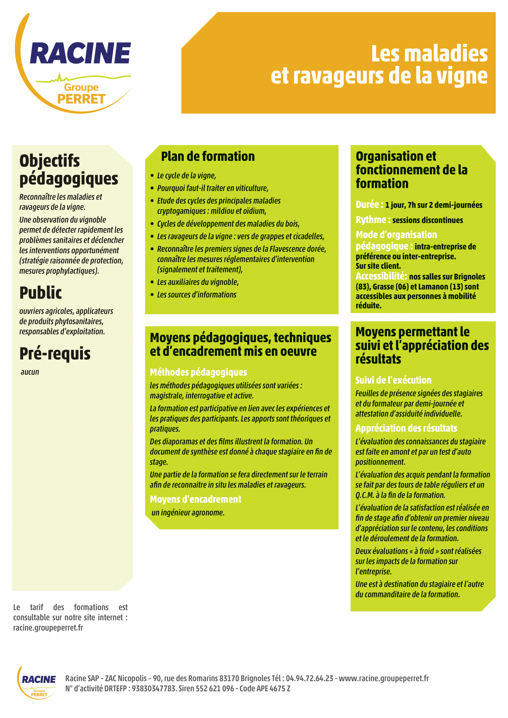 Des diaporamas et des films illustrent la formation. Un document de synthèse est donné à chaque stagiaire en fin de stage.
